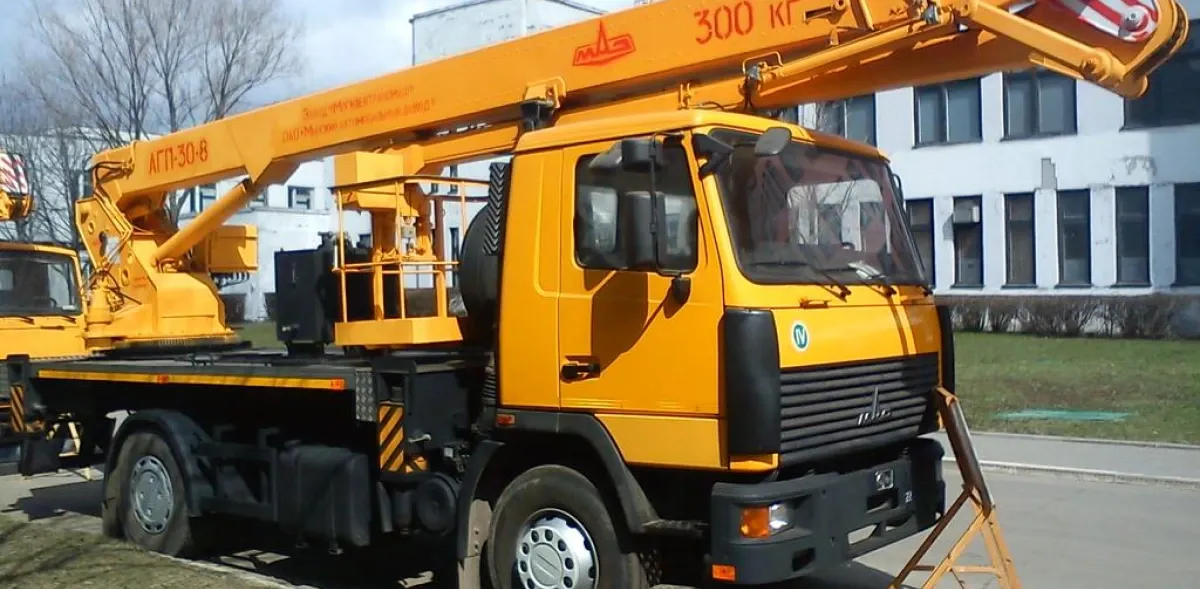 • Сама спецтехника состоит из двух основных элементов – непосредственно стрела с люлькой и шасси, на котором она установлена. Чаще всего в России можно увидеть автовышки на базе КАМАЗ, МАЗ, ГАЗ и других грузовых автомобилей.